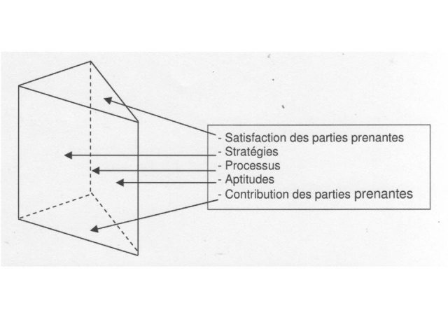 L’analyse globale de la performance conduit à prendre en compte les différents vecteurs de celle-ci. Certains auteurs ont mis en avant le principe d’un véritable système de la performance. Ainsi les organisations qui aspirent à la réussite à long terme, avec des résultats solides, vont chercher à définir des stratégies compatibles avec les attentes des parties prenantes. Le prisme de la performance (Neely, 2002) est un modèle qui présente les cinq facettes de la performance et insiste sur la part que prennent les parties prenantes.