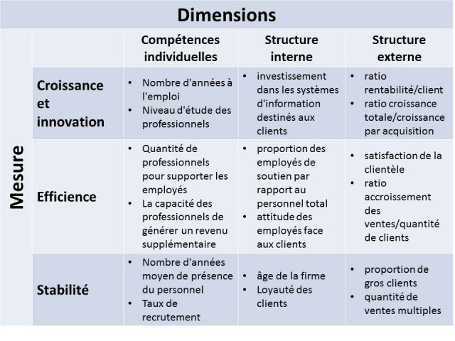 - Morin : dimensions, critères et indicateurs de performance ; HEC Montréal, 2005