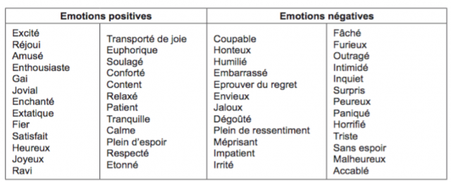 Source : Morgue et Leszczynska, Impact de l’émotion sur la performance managériale. Etude de cas de management en France ; IPAG et GREDEG, université de Nice, 2014