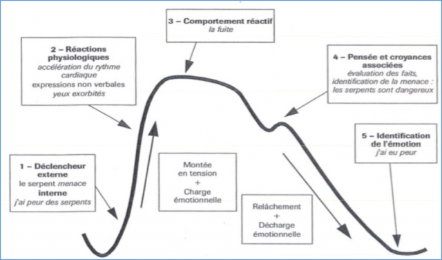 L’analyse du processus émotionnel est donc un préalable à l’action ; préventive ou curative. Elle se heurte à la difficulté de percevoir les émotions et à une analyse délicate des ressentis personnels. Certains auteurs ont cherché à modéliser ce processus pour mieux en décrypter les conséquences possibles (Van Hoorebeke, 2004).