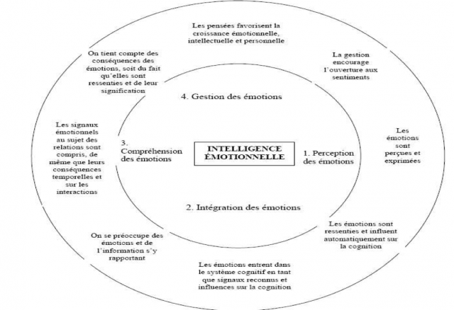 Ces deux psychologues américains ont défini l’intelligence émotionnelle comme la capacité à percevoir les émotions, à accéder et générer des émotions afin d’aider la pensée mais aussi à comprendre les émotions et à les réguler. L’idée c’est de progresser aussi grâce à l’intelligence émotionnelle. C’est donc la compréhension de ses émotions et celles des autres qui va former la base de la sociabilité nécessaire à un mode de management plus « humain ». Pour comprendre les émotions, il faut donc des capacités que les deux psychologues ont classées en deux grandes dimensions :