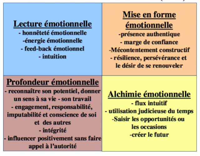 Source : Cooper et Sawaf, 1998 ; cité par Denis Morin (« le développement d’une compétence appelée intelligence émotionnelle », 2005) ; UQAM