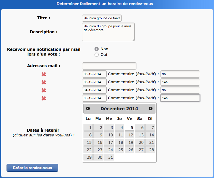 Si vous décidez de créer votre propre sondage de rendez-vous, vous arrivez sur une interface simple :