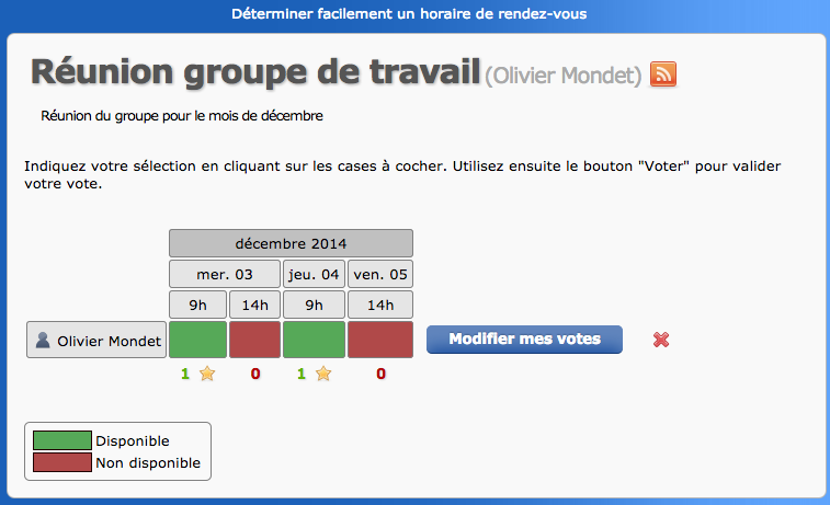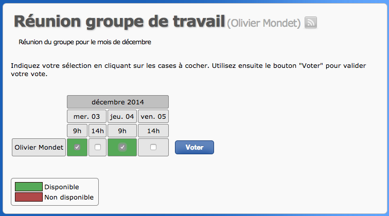 Il faut se connecter obligatoirement. Car cette connexion permettra d’identifier votre participation à un choix de rendez-vous et également d’assumer l’administration de vos propres sondages.