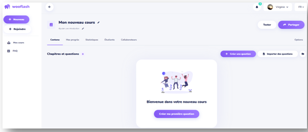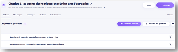Une fois terminée, vous pouvez tester votre cours en cliquant sur « Tester » puis vous partagerez avec vos élèves le test créé via