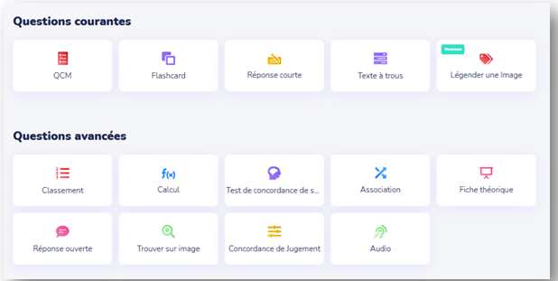 Vous obtenez un tableau de bord avec l’ensemble des questions possibles. Il s’agit de sélectionner la question qui est préprogrammée dans sa présentation.