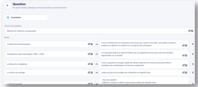 Vous obtenez ainsi un ensemble de questions variées pour la réalisation de votre test. Vous avez la possibilité de bouger l’ordre des questions. Voici un exemple d’organisation de questions. Certaines questions peuvent contenir des audios, des liens vidéo, etc.