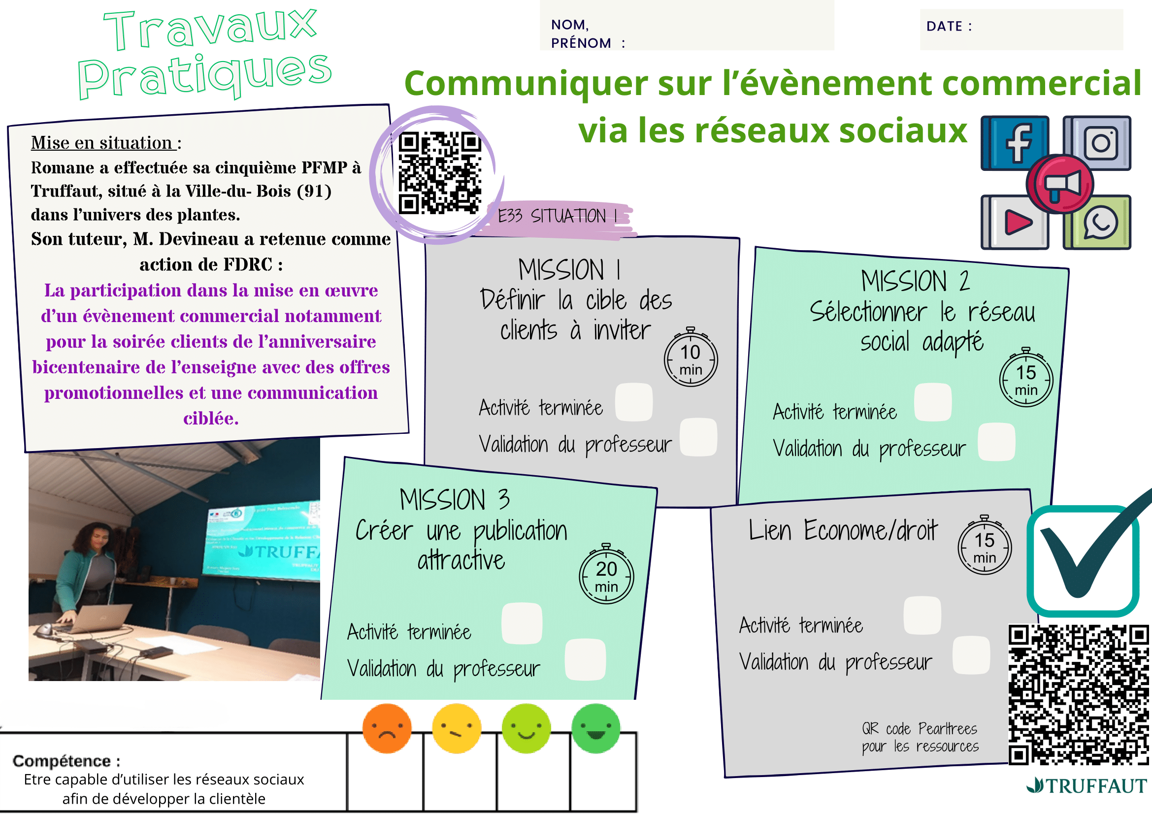 Une feuille de route est à votre disposition pour planifier le travail des élèves et les inviter à œuvrer en autonomie et en équipe. Ce TP propose des transversalités avec l’économie et le droit, notamment sur le développement durable et l’indemnisation des élèves en PFMP. L’objectif de cette séance est de permettre aux élèves d’utiliser les réseaux sociaux pour développer la clientèle. Ils disposeront de divers supports tels que des infographies, vidéos, articles et sites internet pour mener à bien leurs missions. Un compte Pearltrees est indispensable pour retrouver toutes les ressources de cette séance.