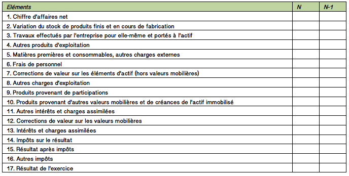 Le contenu du compte de résultat est beaucoup moins détaillé que dans la précédente version de l’article. Sont mentionnés, outre les variations de stocks, pour les charges :