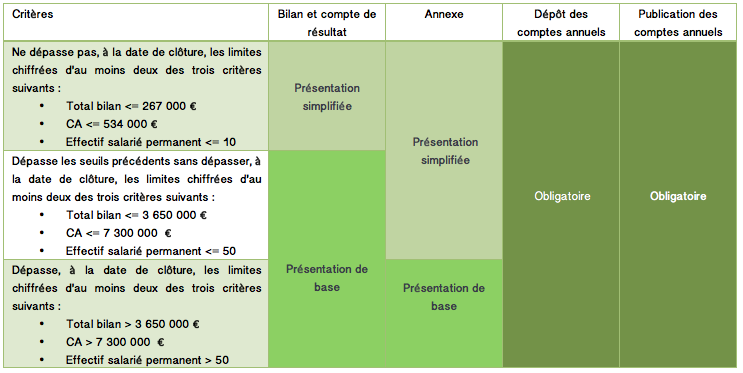 - la possibilité de présenter un bilan et un compte de résultat abrégés,