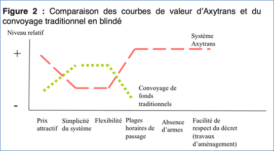 Nous avons vu plus haut (voir tableau de présentation de 6 concepts disruptifs en première partie) que la société VALTIS a introduit un nouveau concept de convoyage de fonds. Le système AXYTRANS présente plusieurs éléments valorisants qui constituent sa différence. Le concept s’accorde alors avec le modèle d’affaires de la société, bâti autour de cette innovation de rupture, dans un secteur où peu d’innovations ont vu le jour.