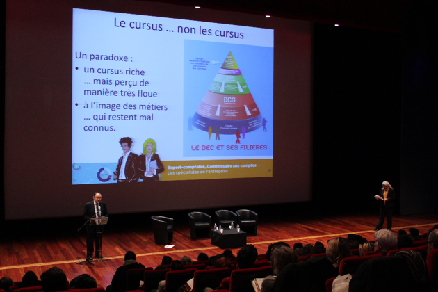 Il invite sur scène Jean Bouquot, président de la CRCCV, Jean-Luc Flabeau, président de la CRCC de Paris, François Millo, secrétaire général de l’Ordre des experts-comptables Paris Ile de France et Carine Longeat, IA-IPR Économie et gestion sur l’académie de Versailles.