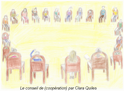 - Une démocratie et une cohésion du groupe : Dans le cadre du conseil, le vote étant ouvert à tous, il est démocratique et permet ainsi une forte cohésion de groupe autour d’une décision commune. Le contrôle par les pairs est de plus, un premier pas vers l’apprentissage de la citoyenneté et de la démocratie.