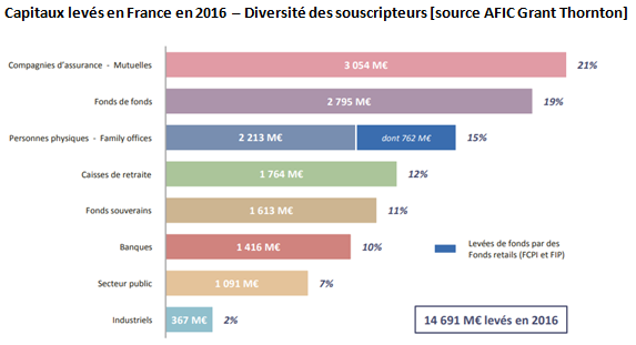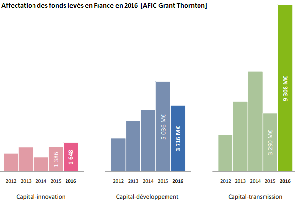 - Une reprise depuis 2010 avec un montant record de fonds levés en 2016 à hauteur de 14,7 milliards d’euros.