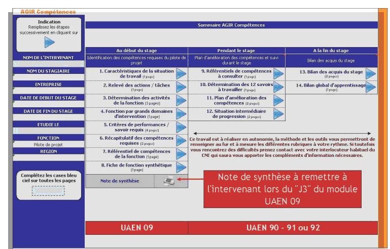 Voici l’écran de démarrage de l’onglet « AGIR COMPETENCES » (source : CNAM)