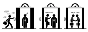 Apparu au début des années 80 dans le secteur cinématographique où il permettait un premier aperçu des projets de film ; le « pitch » s’est ensuite rapidement répandu dans les entreprises américaines où il donnait la possibilité à un porteur de projet de convaincre rapidement un décideur, dans un temps très réduit. On parle d’ailleurs « d’elevator pitch » en utilisant l’image de l’ascenseur qui monte pour représenter le temps dont dispose le porteur de projet pour convaincre.