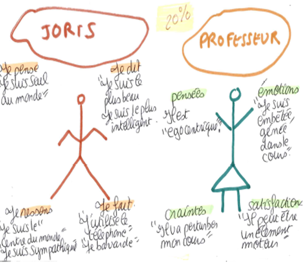 Profil cognitif : Problèmes d’attention, des difficultés à rester concentré sur une activité et à suivre calmement le cours. Profil social : Bonne entente avec le reste de la classe, est « ami » avec tous ses camarades, Il les déconcentre en les interpellant en plein cours. Fils unique, vit seul avec sa maman, vit très mal d’être séparé de son père. Profil émotionnel : Élève qui fonctionne à l’affect, se met au travail et fait quelques efforts quand il « aime » bien un enseignant. Se comporte mal quand il pense que l’enseignant « ne l’aime pas » Profil des compétences et des capacités : Élève qui a des facilités : il comprend et obtient de bons résultats mais il manque souvent de motivation et ne sait pas vers quelles études se diriger après son baccalauréat. Carte d’empathie :