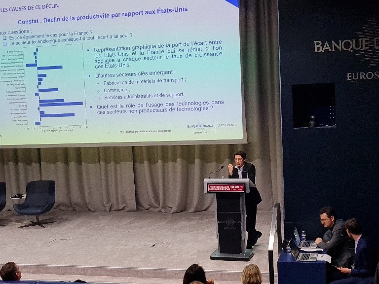 La cérémonie organisée par [*la Banque de France et EDUCFI*] a permis aux trois lauréates de notre académie ainsi qu’à leur classe respective d’assister à une conférence de grande qualité sur le thème « [**La productivité française *] », présentée par présentée par Monsieur Simon BUNEL, économiste chercheur à la Banque de France au Service des études sur les politiques structurelles.