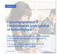 Publié sur Eduscol par le ministère, le vademecum est un guide qui précise les repères et propose des pistes d’action possibles et des ressources pour l’organisation de l’accompagnement à l’orientation en lycée général et technologique.